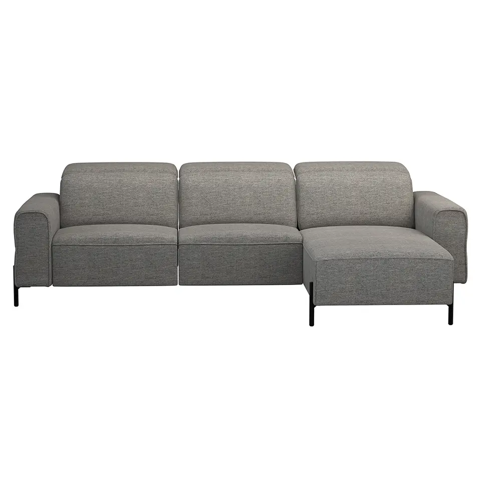 Bank Elsa met chaise longue rechts - stof Eden - grijs