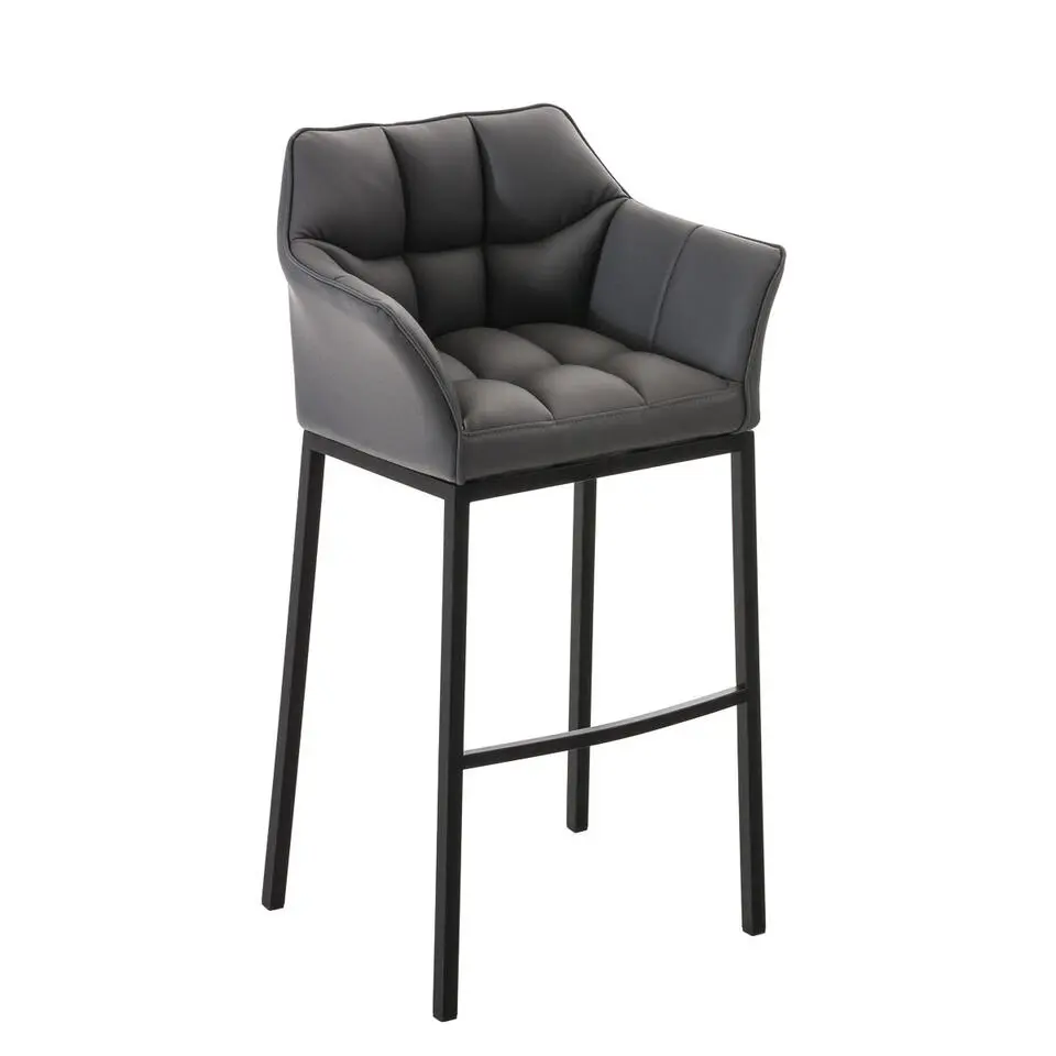 CLP Barkruk Damaso zwart Frame - Kunstleer - grijs
