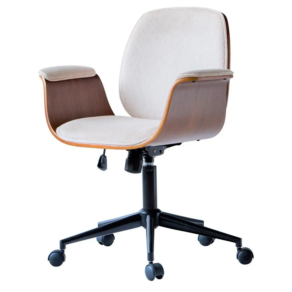 Bureaustoel van beige stof met metalen onderstel