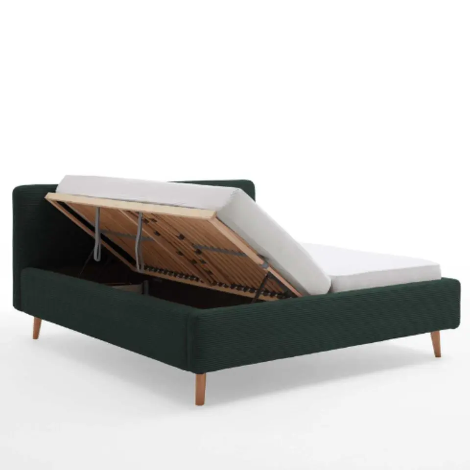 Bed Madras 160x200cm met opbergruimte ribfluweel - donkergroen