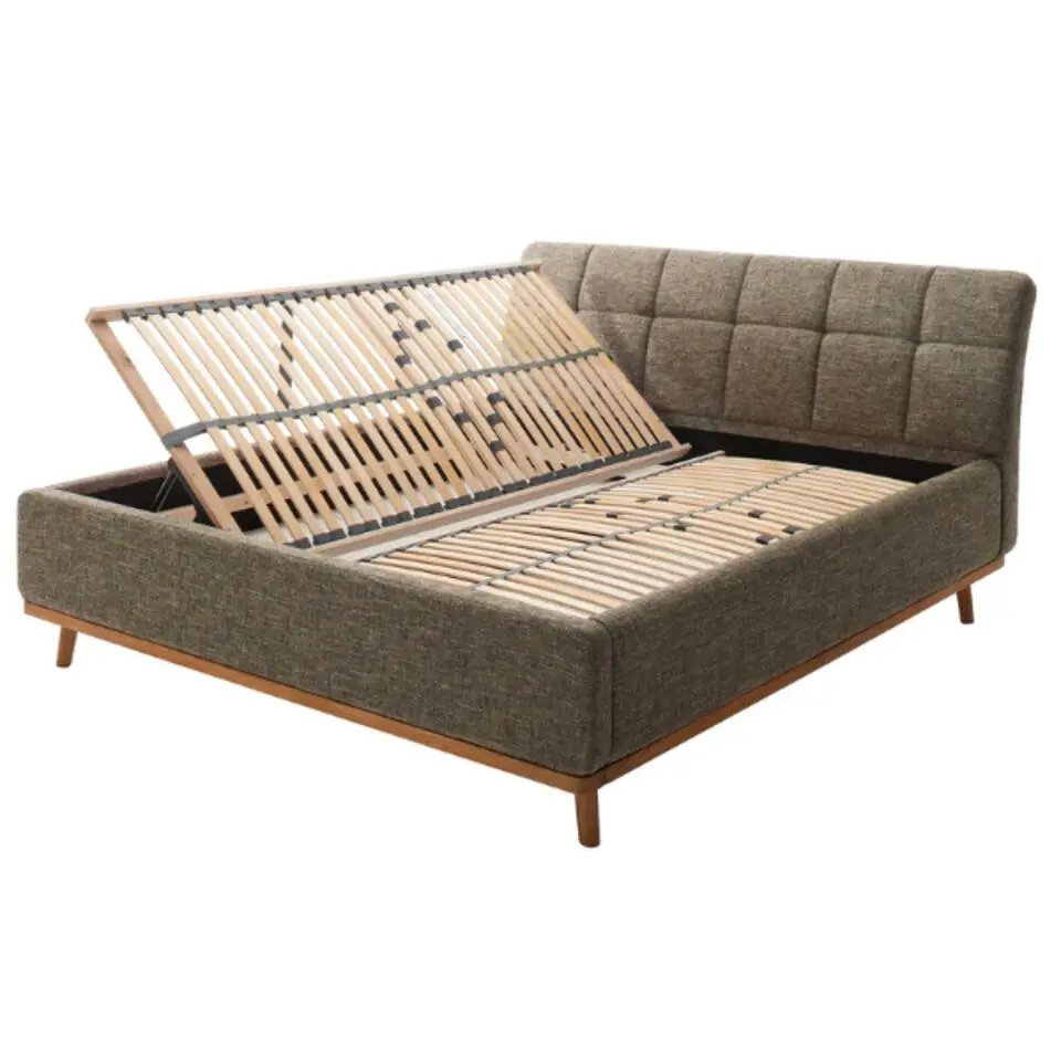 Gecapitonneerd bed Cézanne 180x200cm met opbergruimte - khaki/eik