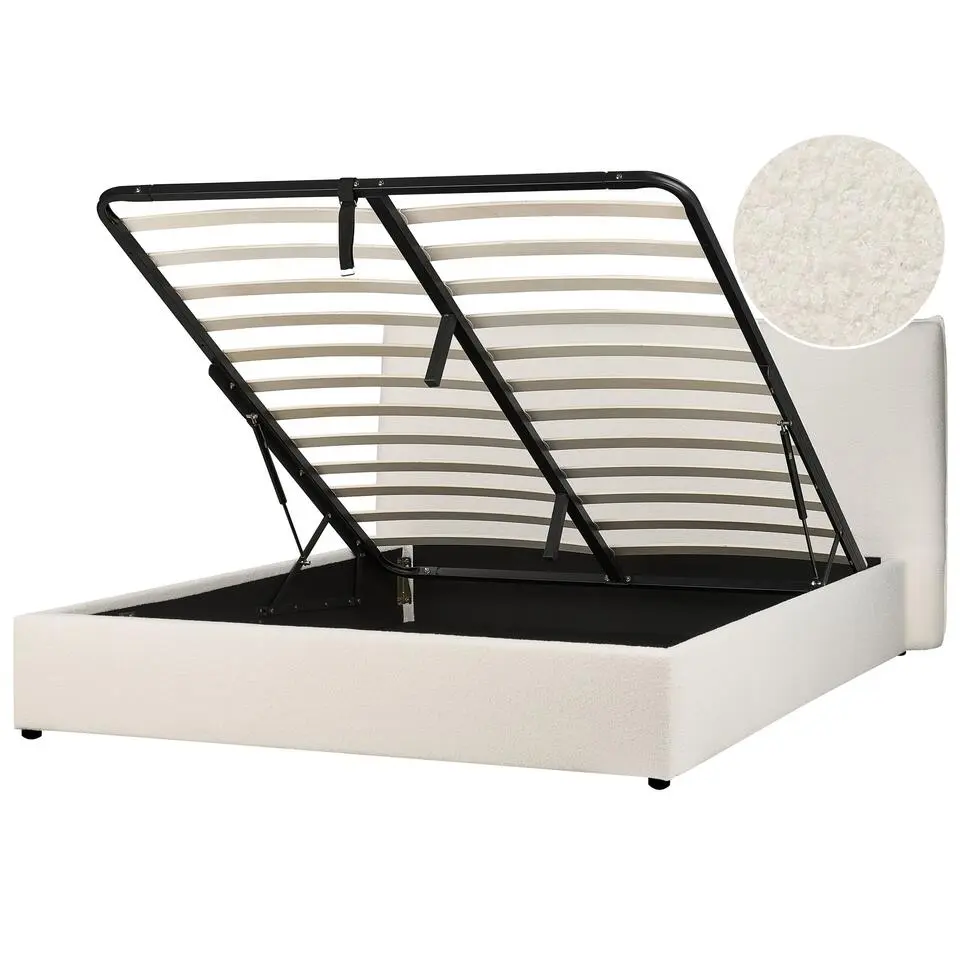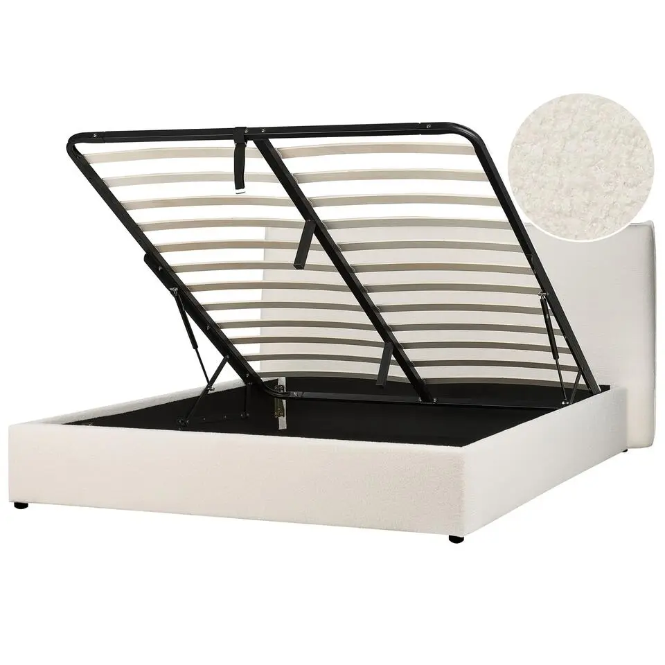 Tweepersoonsbed Dalila 180x200cm teddystof met opbergruimte - wit