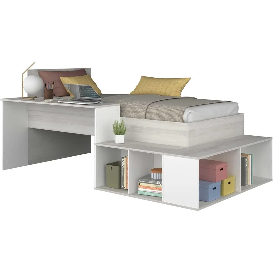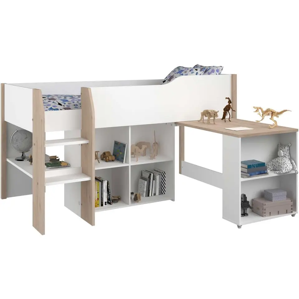 Halfhoogslaper met bureau Moscon 90x200 - wit/eik