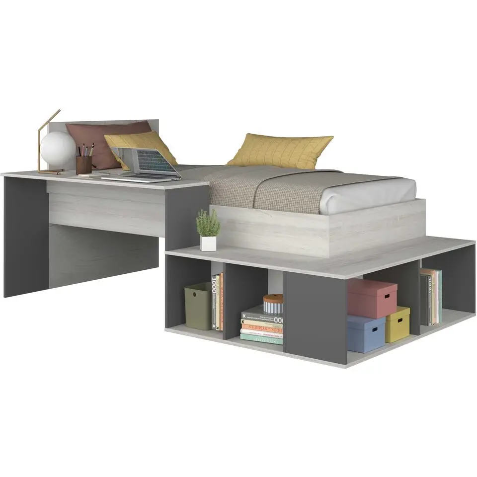 Hoogslaper Beau 90x200 met bureau & kast - schaduwgrijs