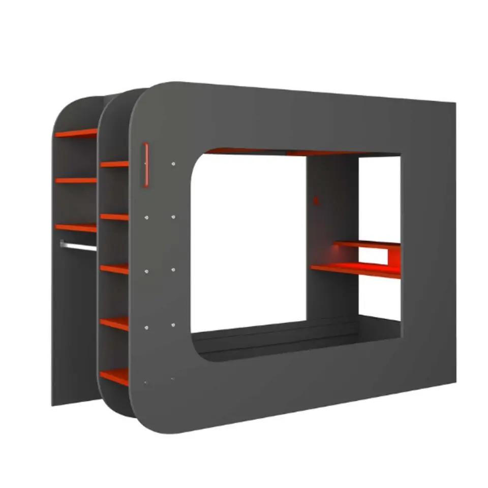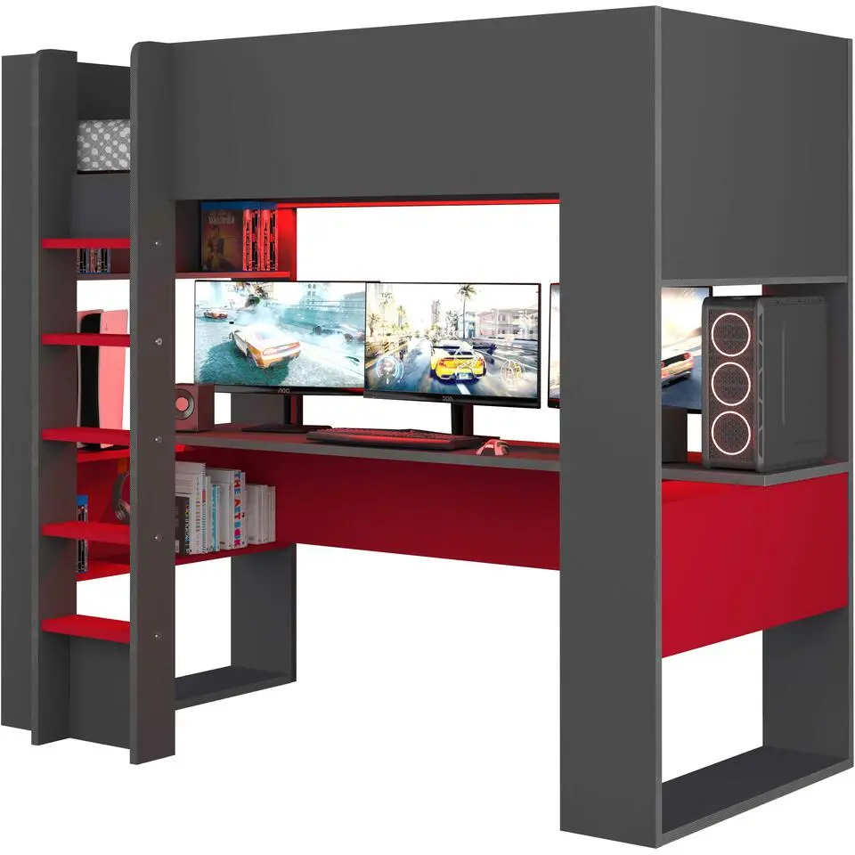 Hoogslaper Graham met gamebureau 120x200cm - antraciet/rood