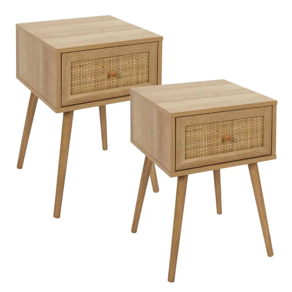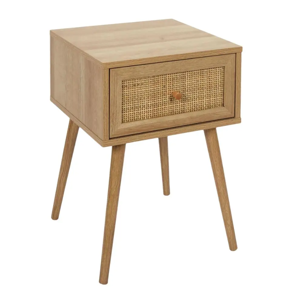 MISOU Nachtkastje Met Lade Rotan Webbing Hout