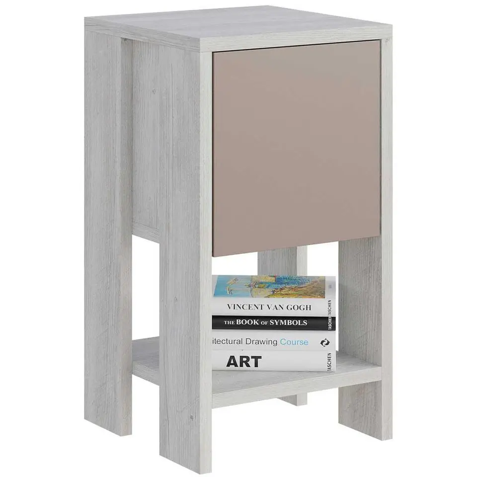 Ema Nachtkastje - 100% MELAMINE - Wit, Lichtmokka