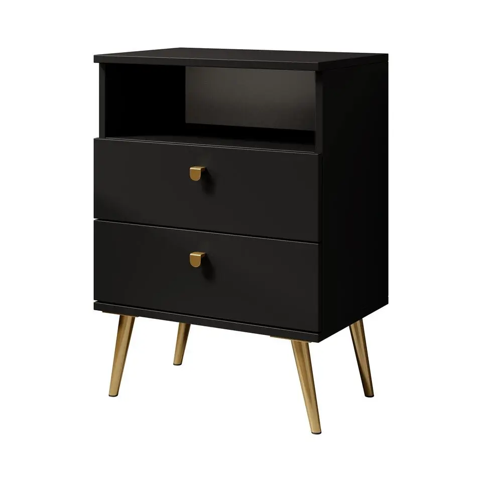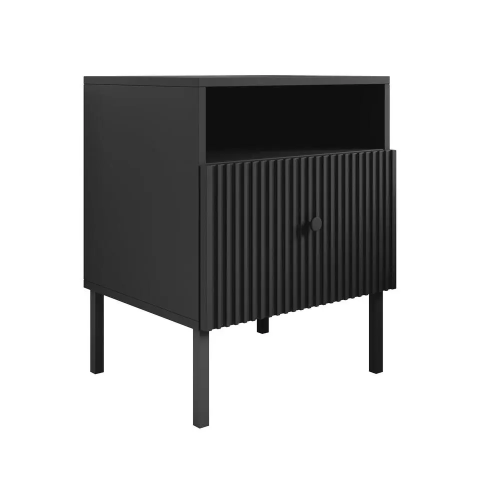 Meubella - Nachtkastje Timoteo - Mat zwart - 46 cm