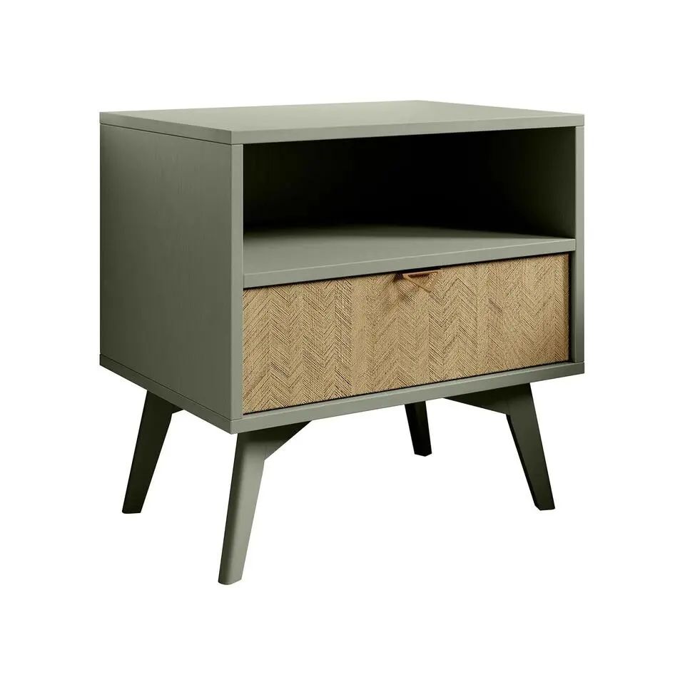 Meubella - Nachtkastje Essence - Groen - Licht eiken