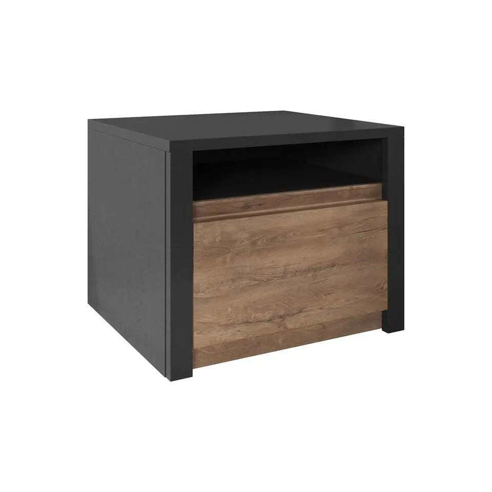 Meubella - Nachtkastje Saturn - Eiken - Zwart - 45 cm
