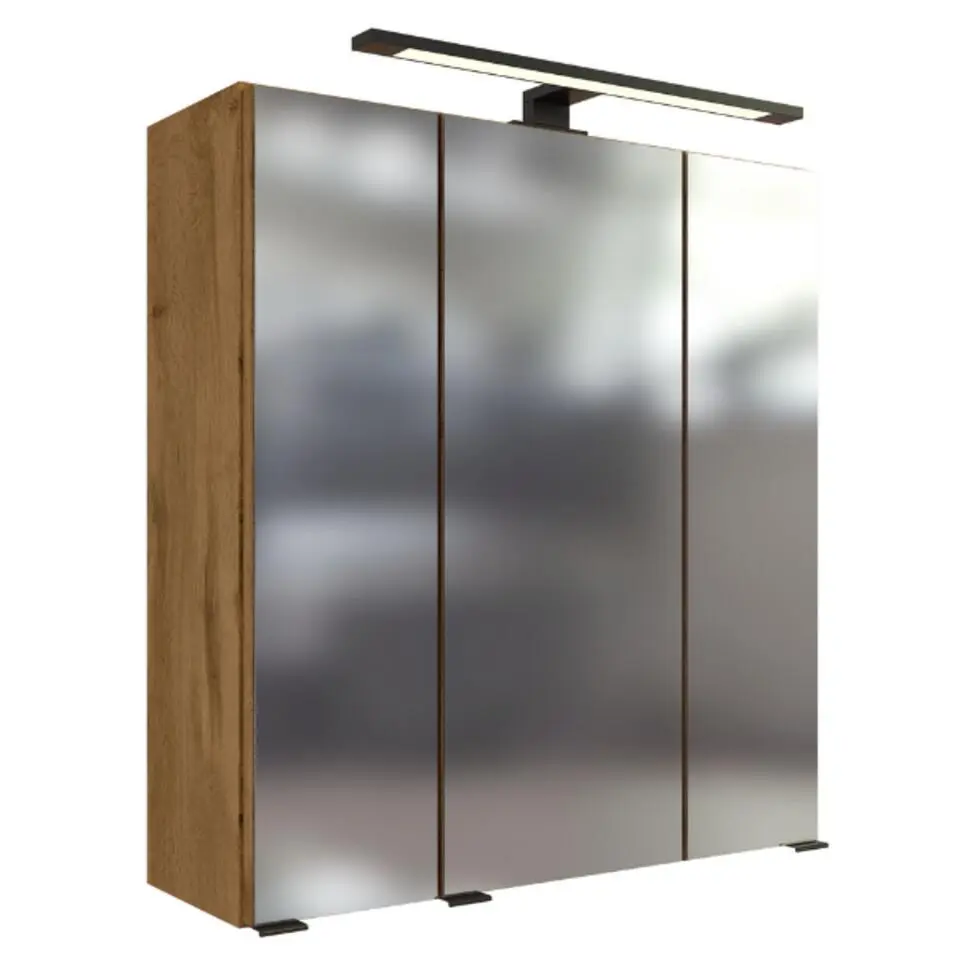 Spiegelkast Malvo 60cm 3 deuren met verlichting - eik
