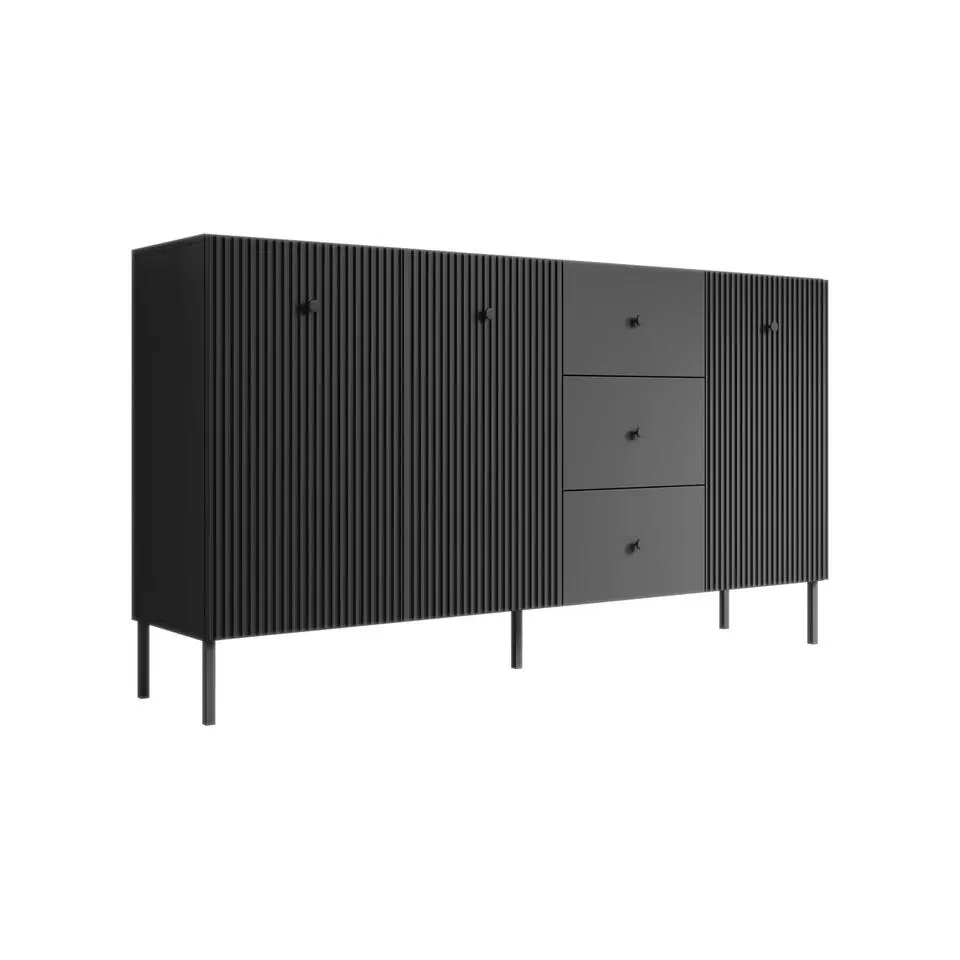 Meubella - Dressoir Saran - Mat zwart - Hoog - 104 cm