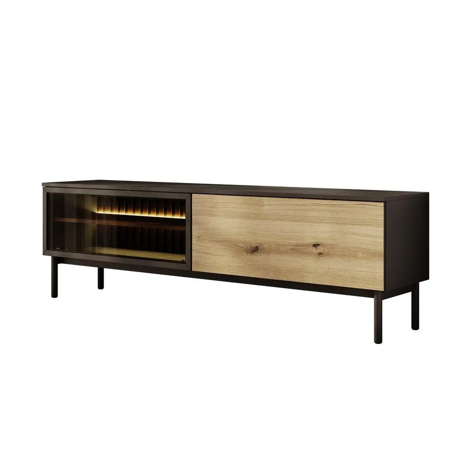 Meubella - TV-Meubel Ludwig - Zwart - Eiken - 180 cm