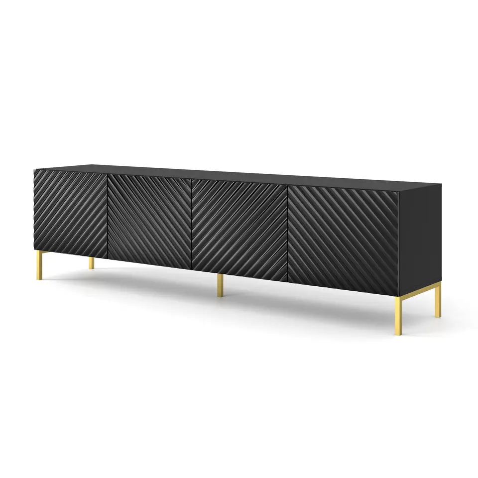 SURF TV-meubel 4D 200 cm mat zwart gouden frame