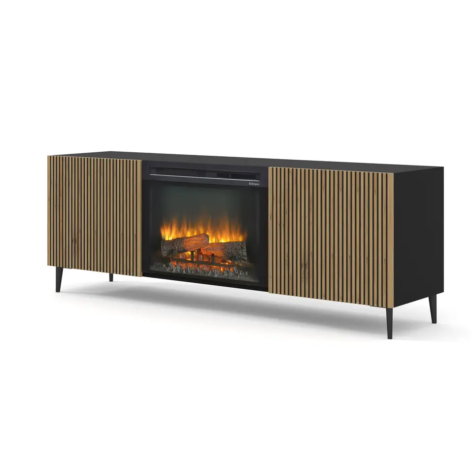 Ravenna F TV-meubel 2D met open haard artisan eiken