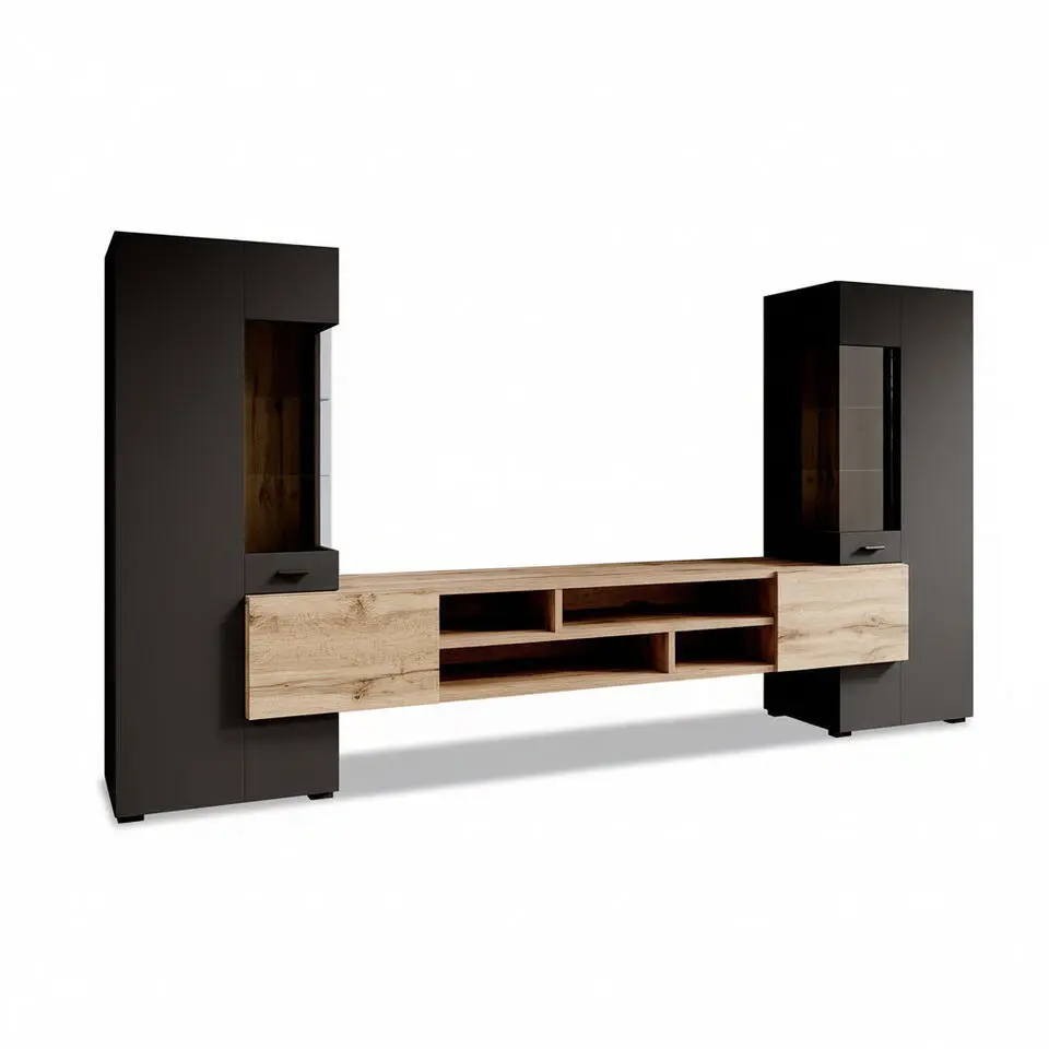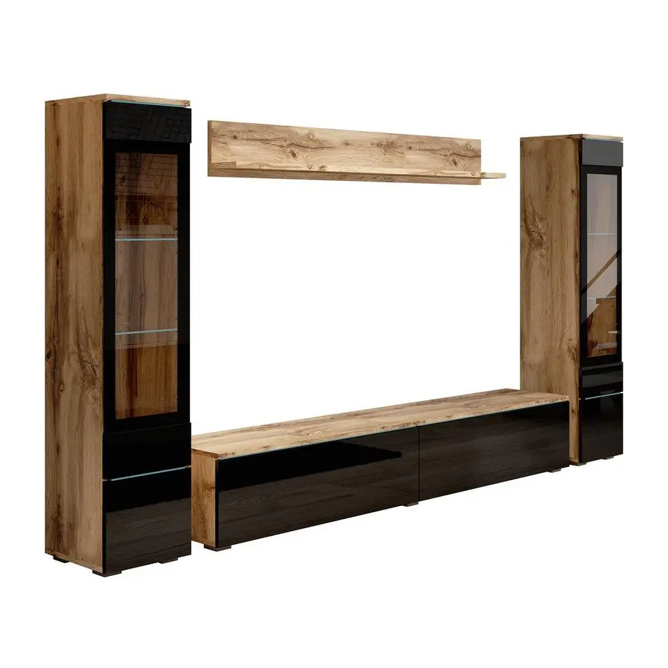 Meubella - Wandmeubel Variety - Zwart - Eiken