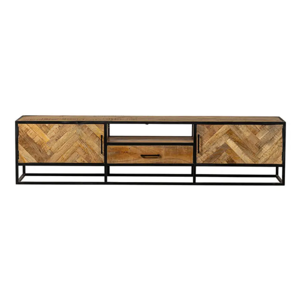 Tv Meubel Bruin - Visgraat - 250cm - Mangohout - Kast Isa