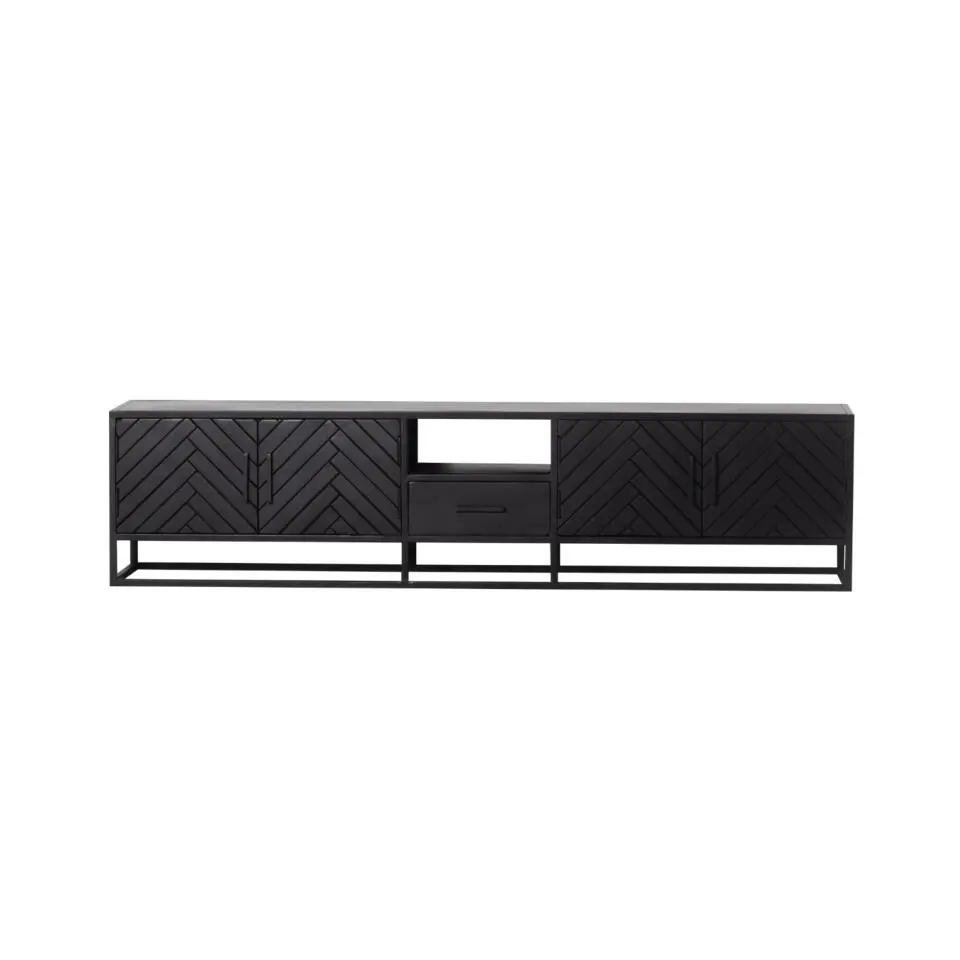 Tv-Meubel Zwart Visgraat - Mangohout - Metaal - Isa