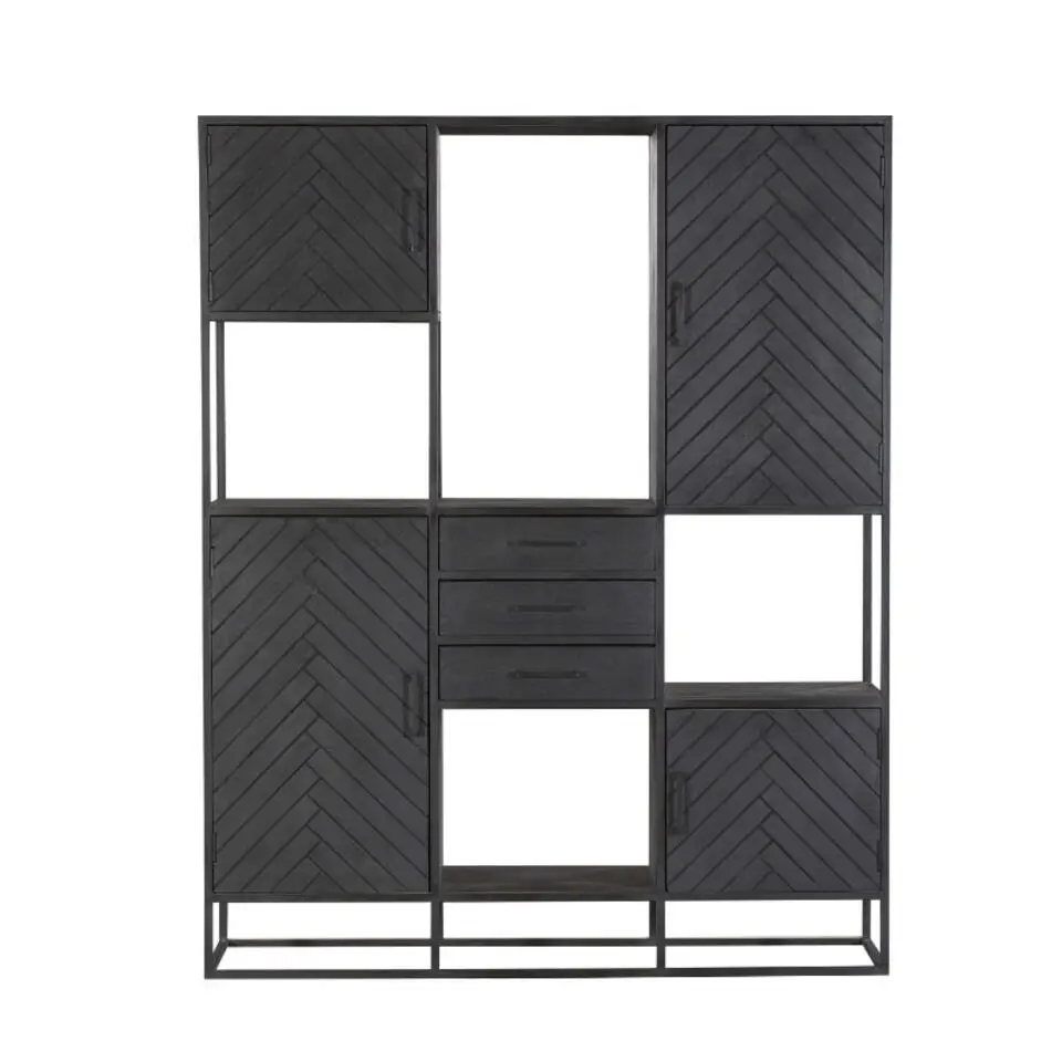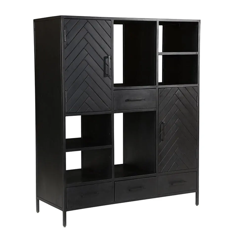 Furndea Wandkast Scandi visgraat zwart - 40x100x115 cm