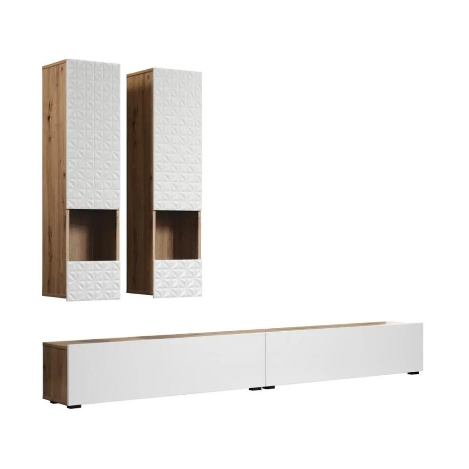 Hioshop Rezzo systeem rek 4 delen mat wit- eiken decor