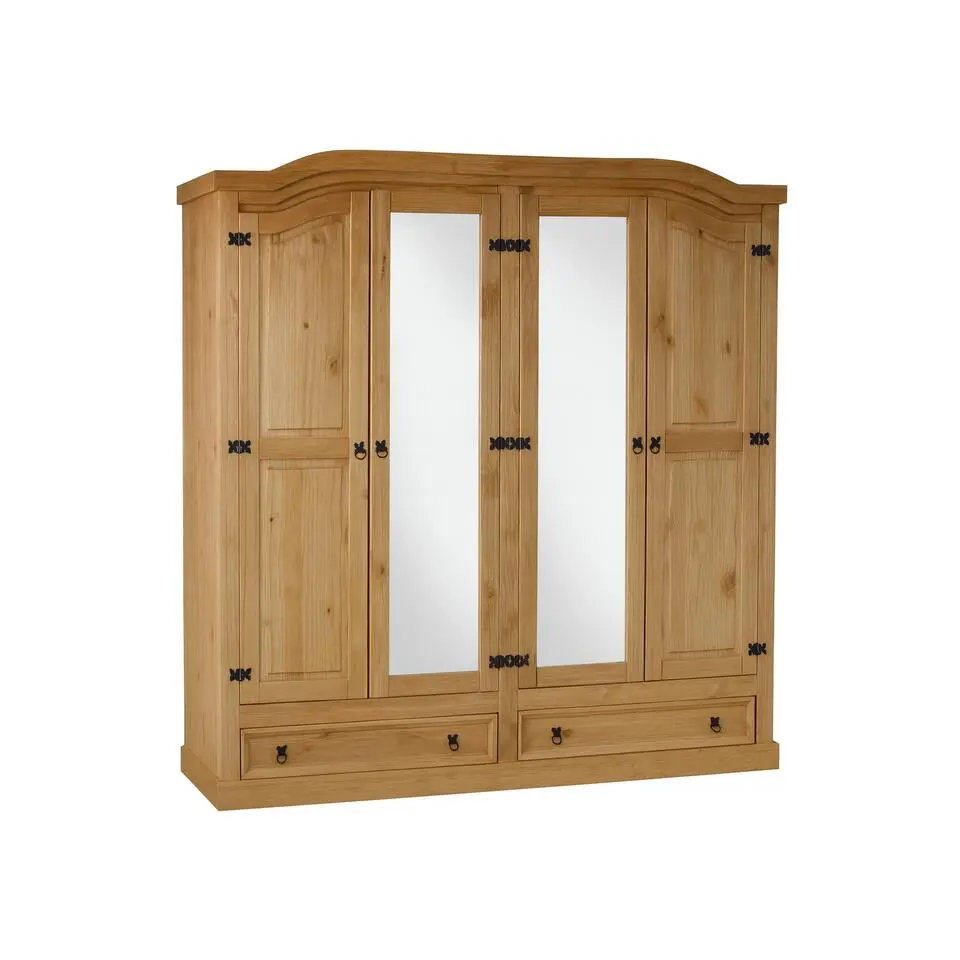 Hioshop New Mexico 4-deurs kledingkast met spiegel