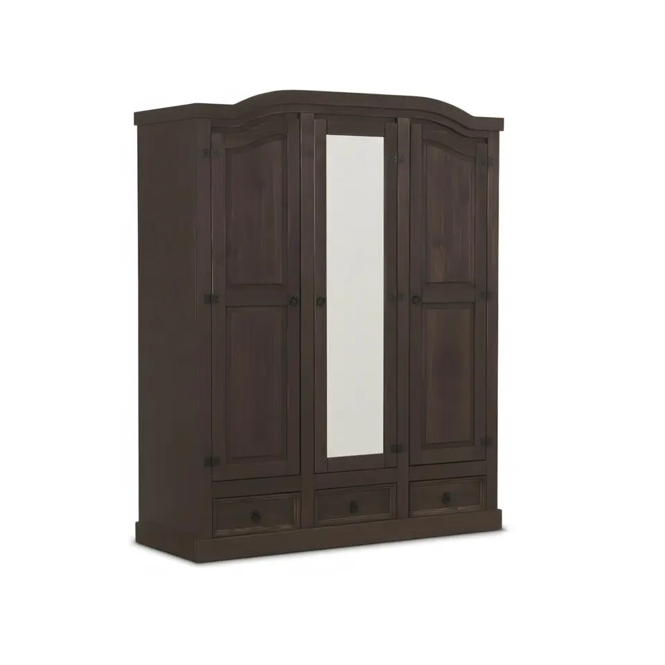 Hioshop New Mexico 3-deurs kledingkast bruin met spiegel