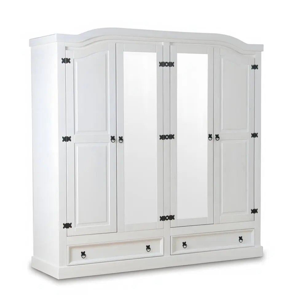 Hioshop New Mexico 4-deurs kledingkast wit met spiegel