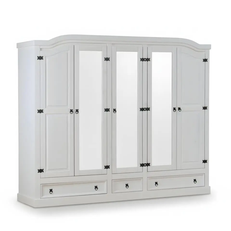 Hioshop New Mexico 5-deurs kledingkast wit met spiegel