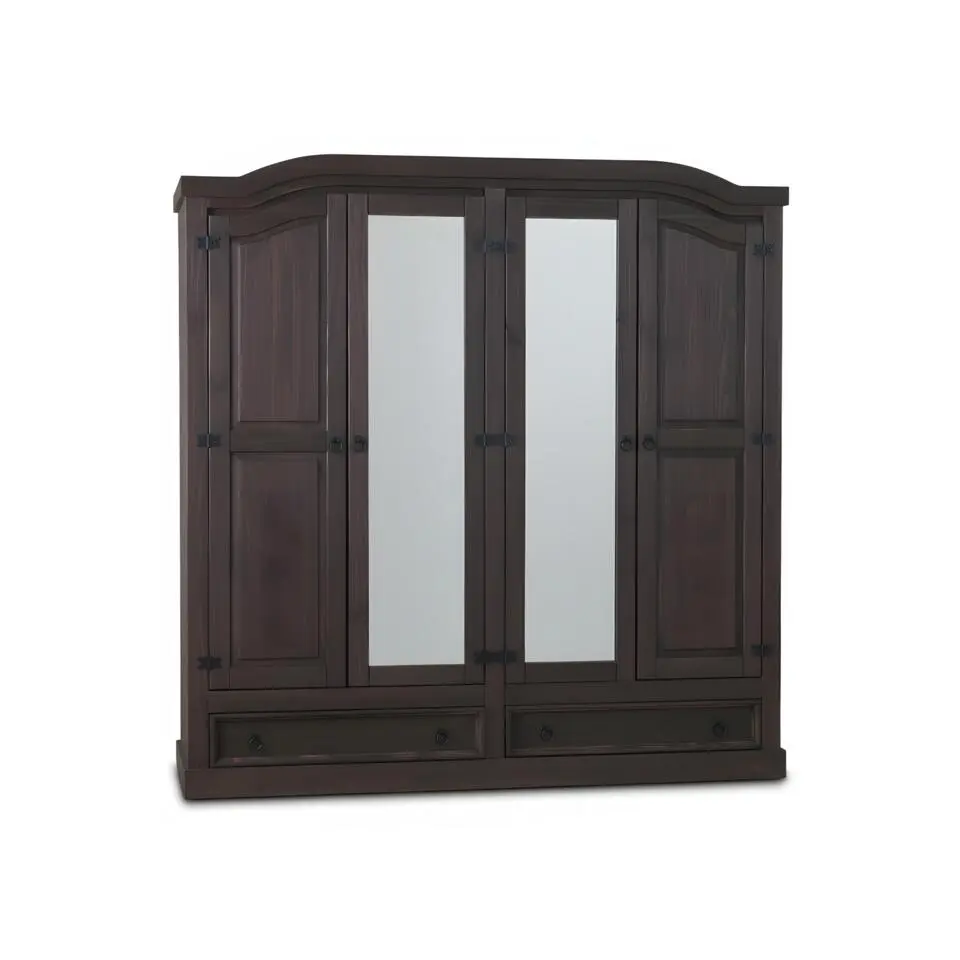 Hioshop New Mexico 4-deurs kledingkast bruin met spiegel