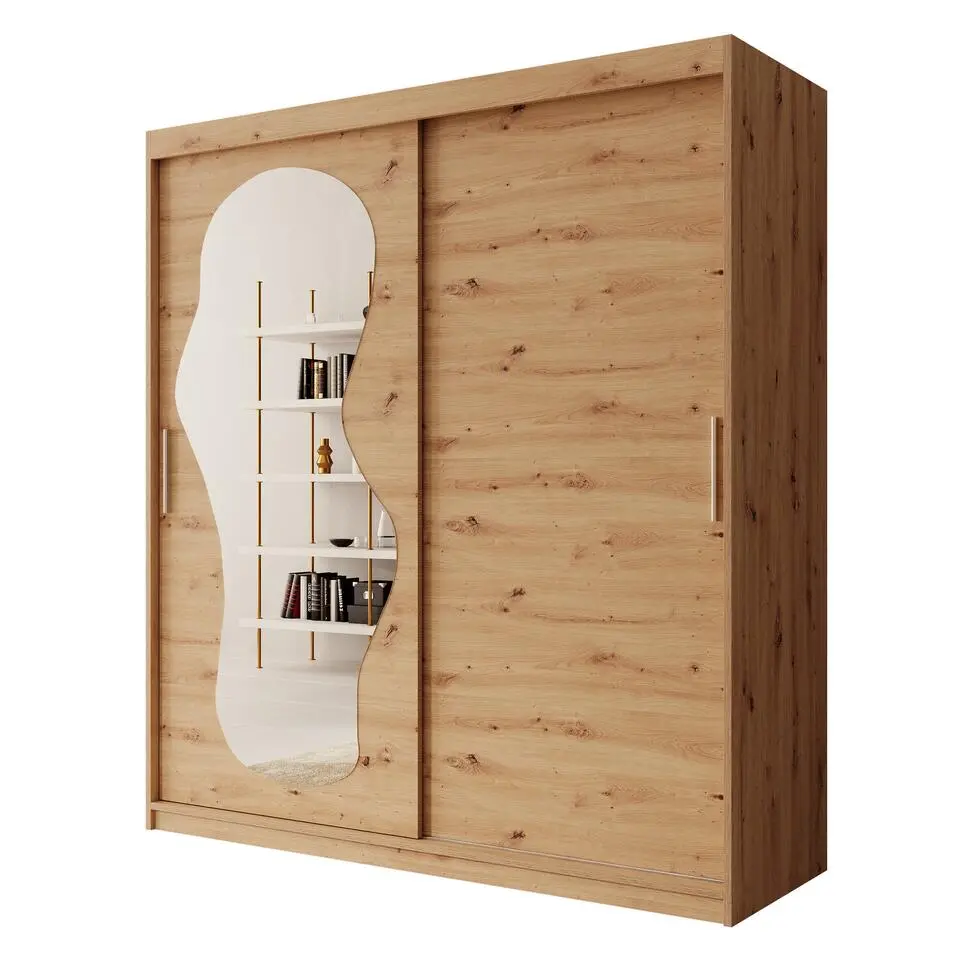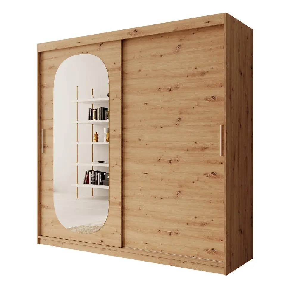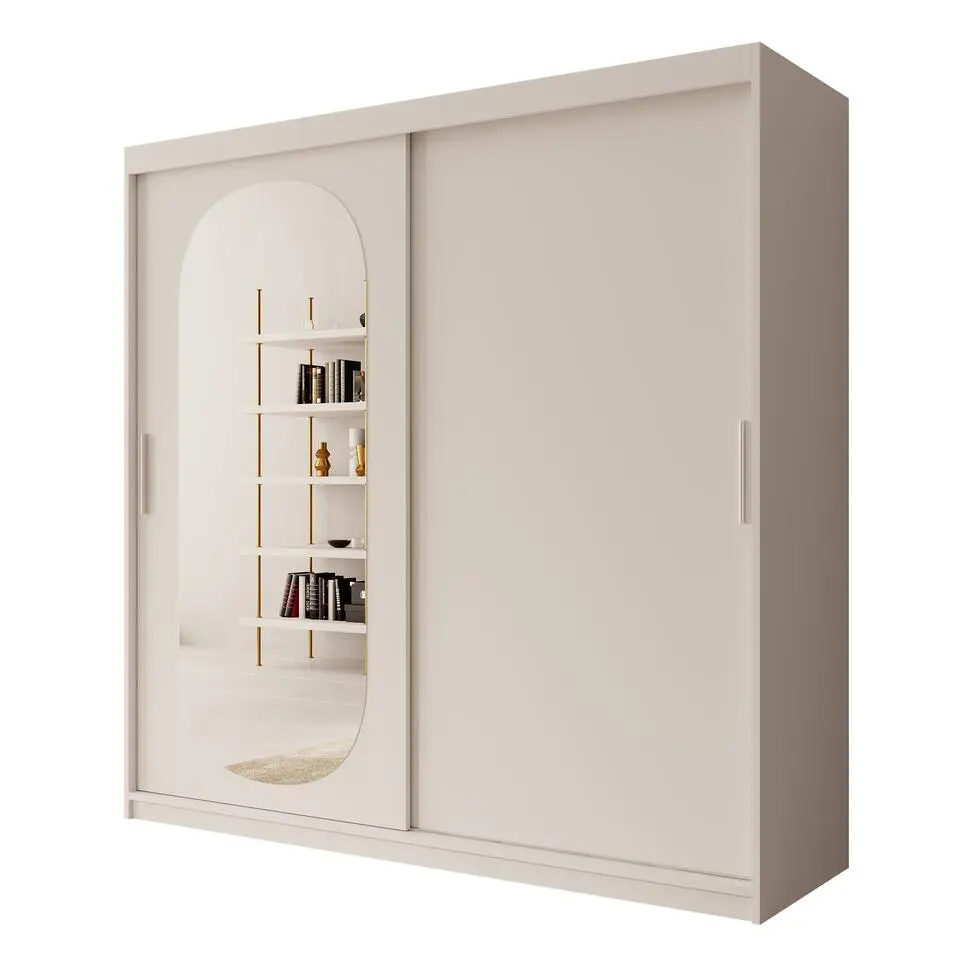Meubella - Kledingkast Azai - Wit - 200 cm - Met spiegel
