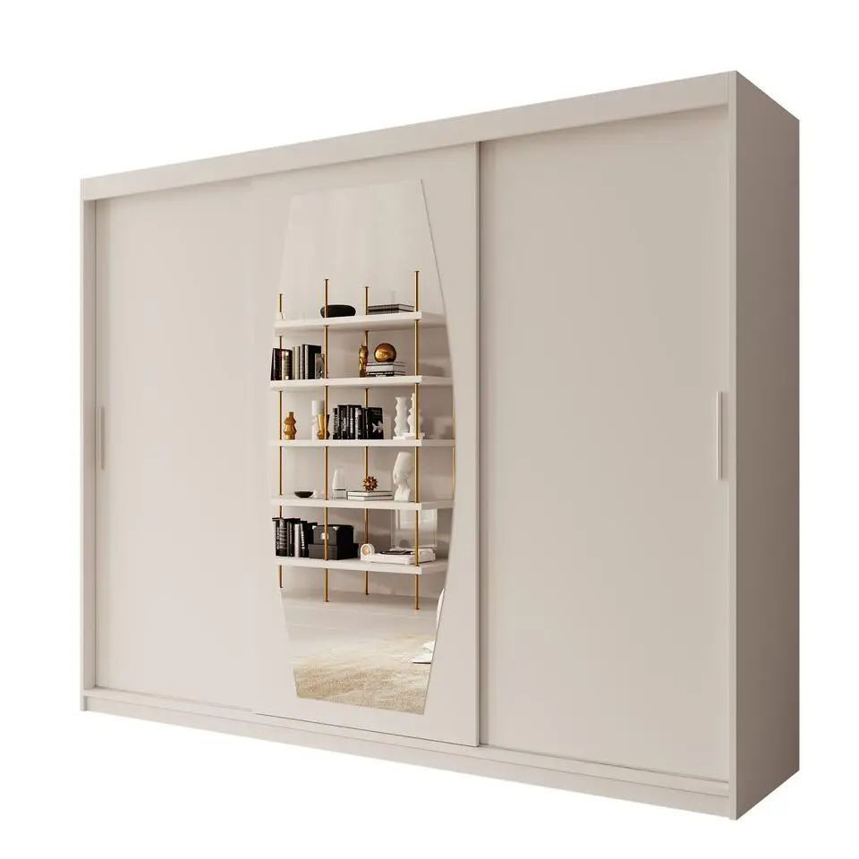 Meubella - Kledingkast Bodhi - Wit - 250 cm - Met spiegel