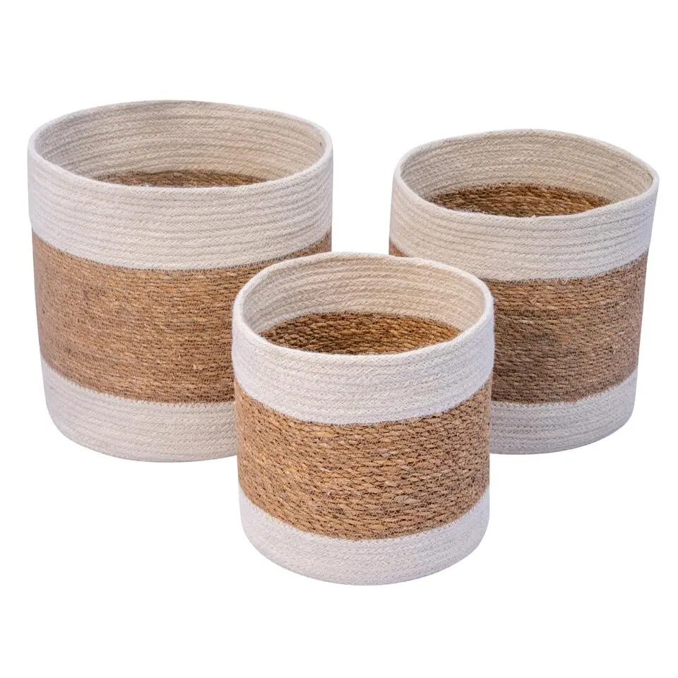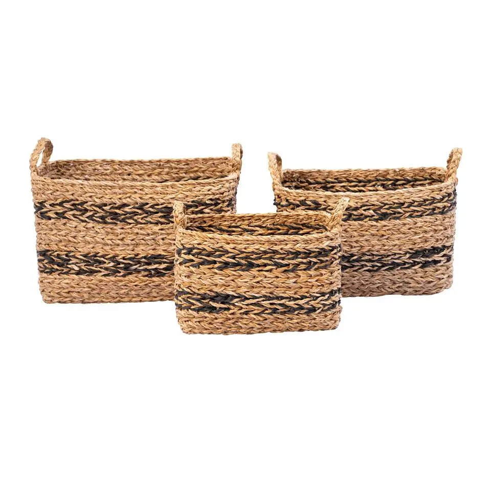 Mandenset (3-delig) van zeegras in bruin
