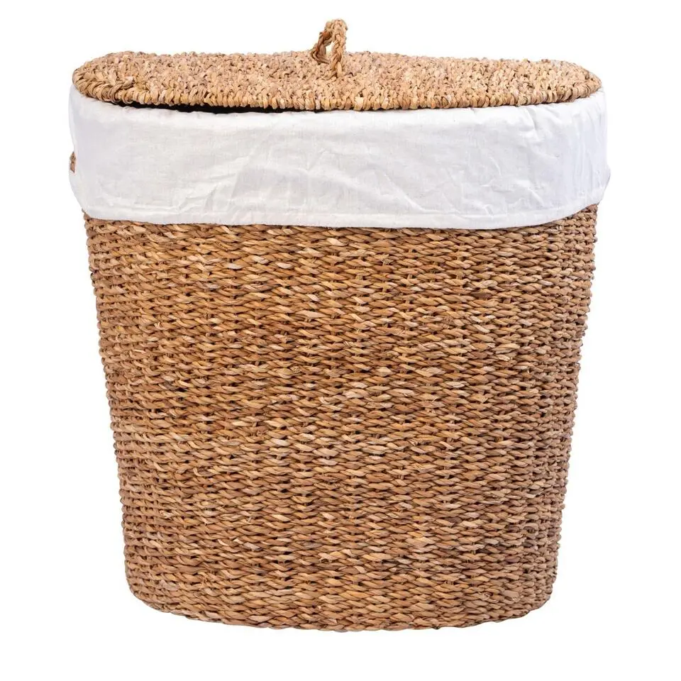 Wasmand van gevlochten jute met deksel