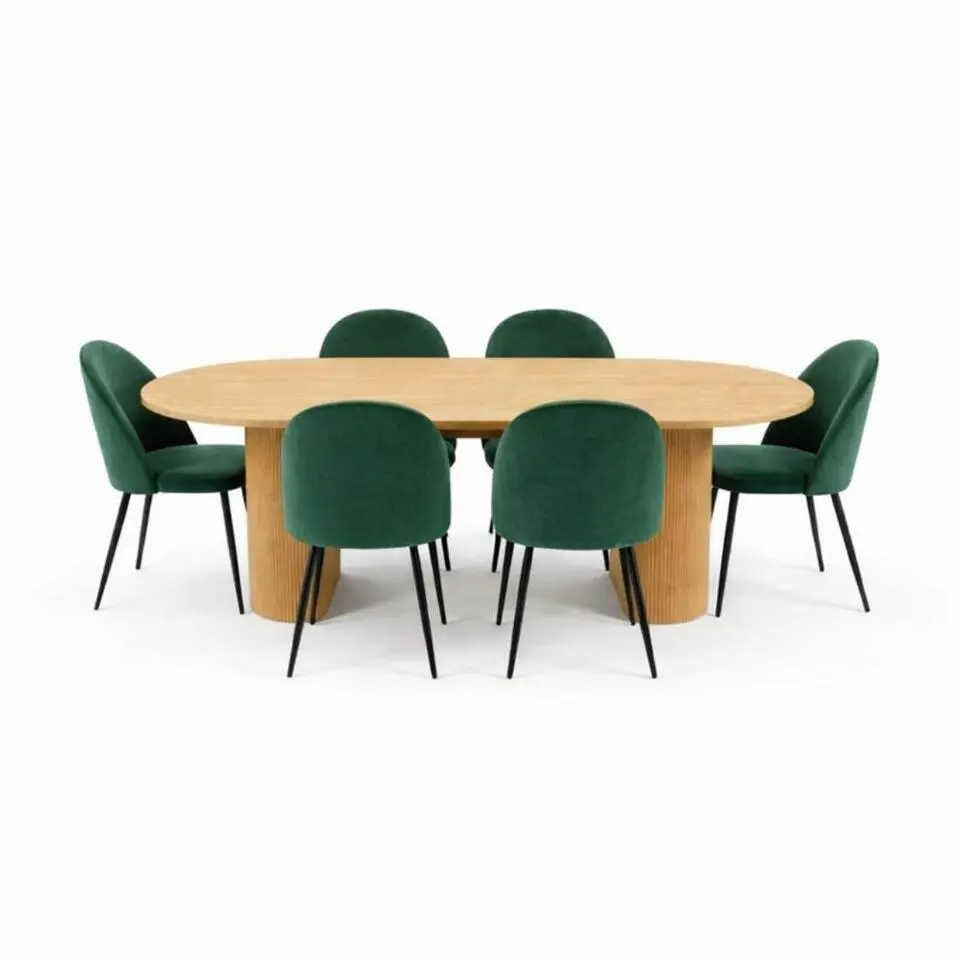 Hioshop Roxby eethoek tafel met 4 stoelen natuur- eik