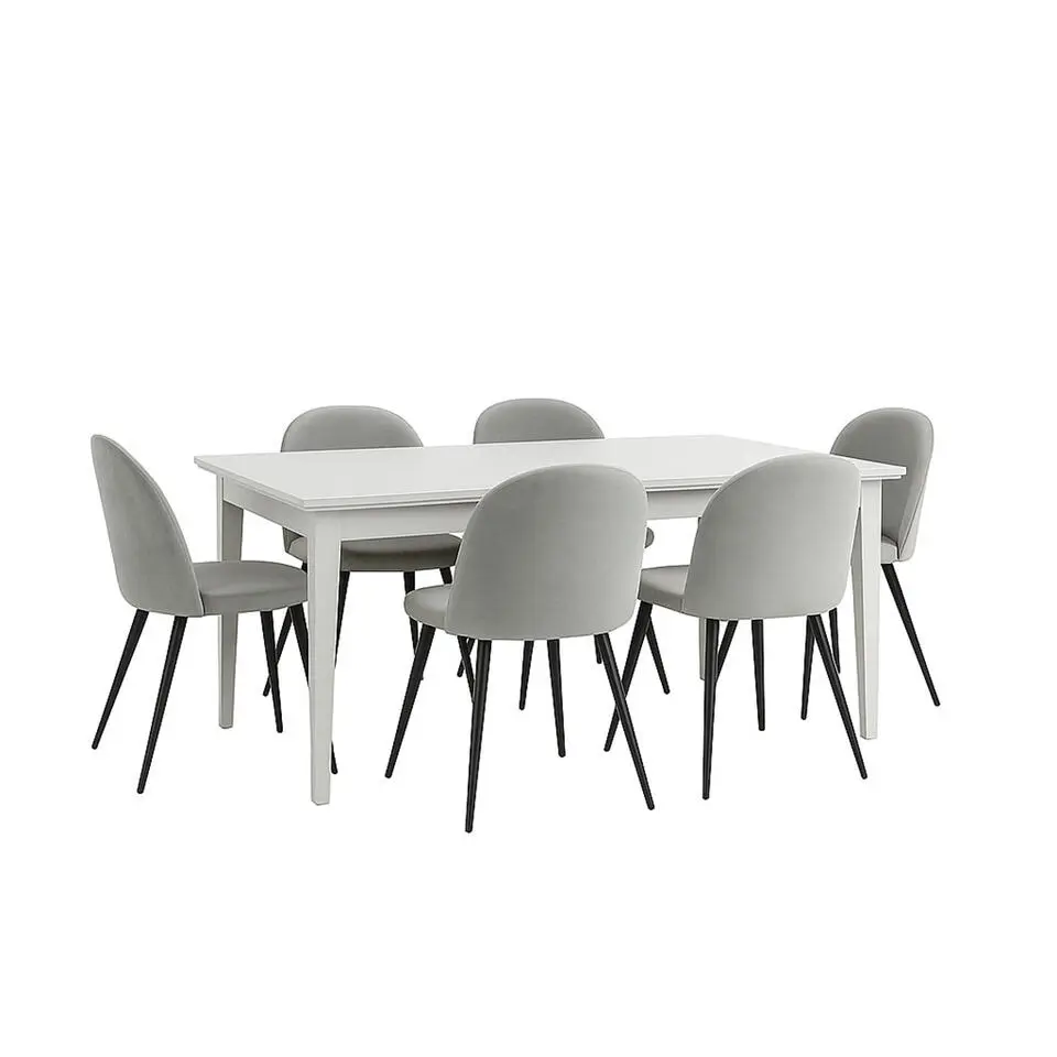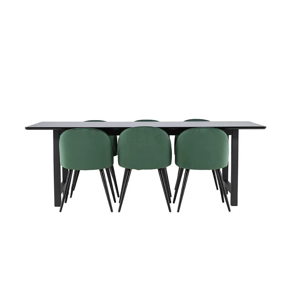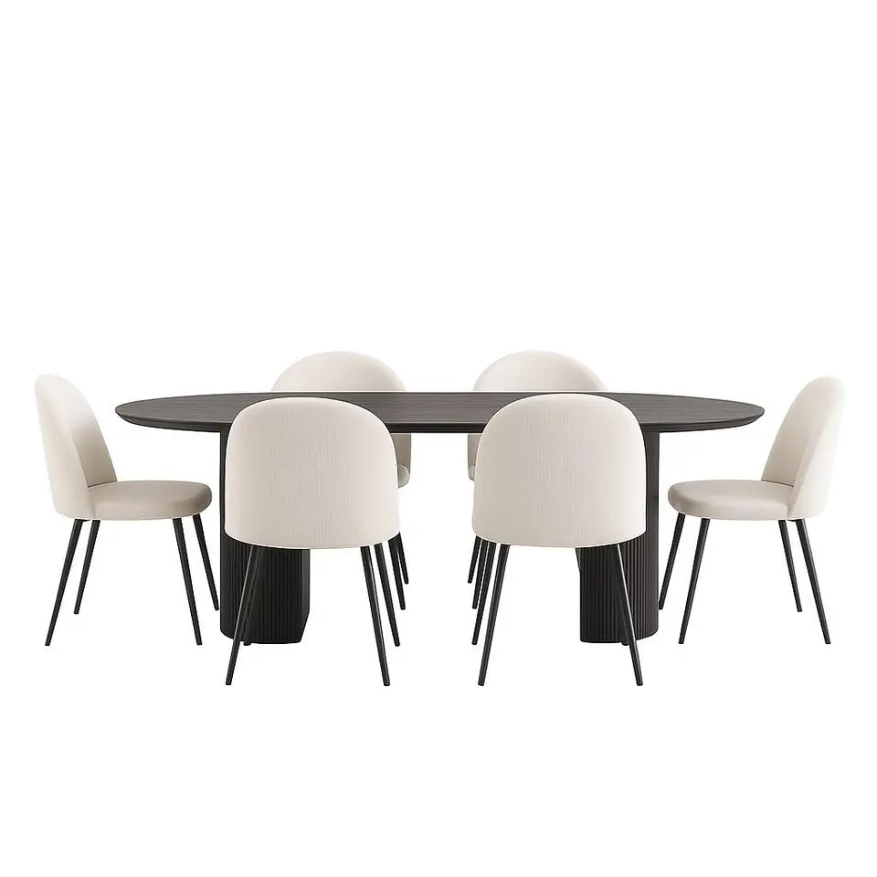 Hioshop Vail eethoek tafel zwart en 6 berit stoelen beige