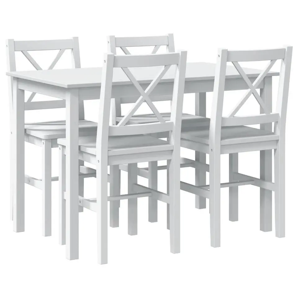 vidaXL - Eetkamertafel En -stoel - Wit - Hout