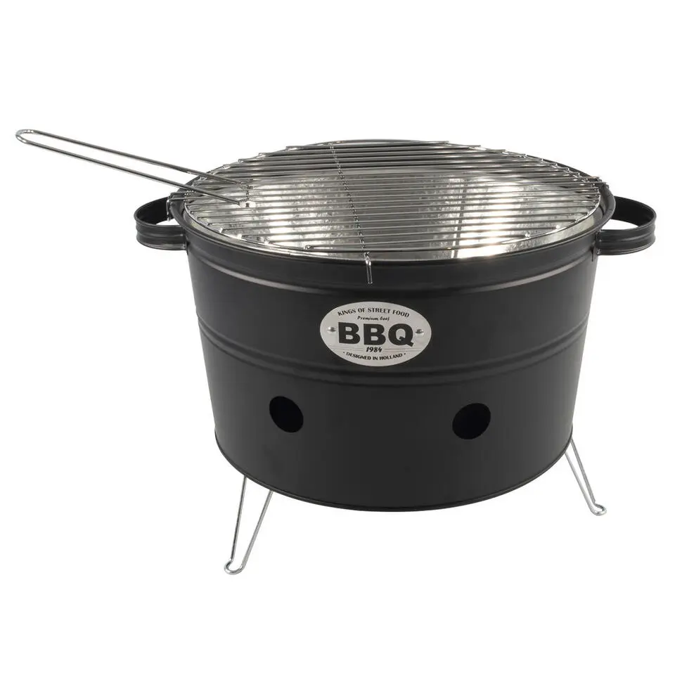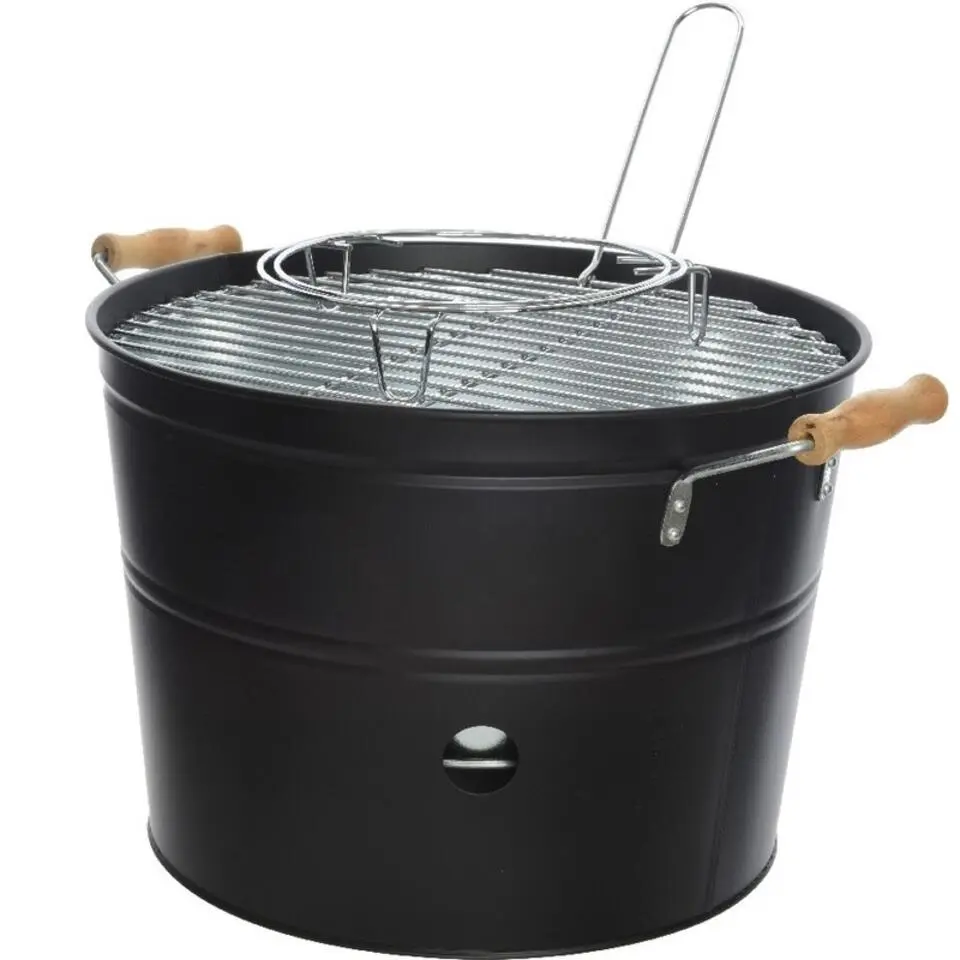 Barbecue emmer - zwart - rond - 33 x 24 cm