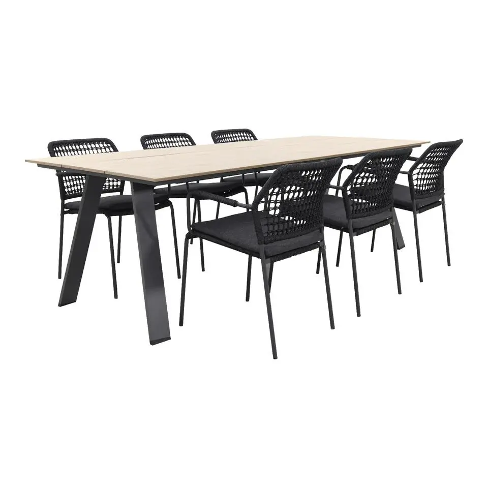 OLBIA - Tuinset 6-zits met stoelen - Wit/Zwart - Vezelcement
