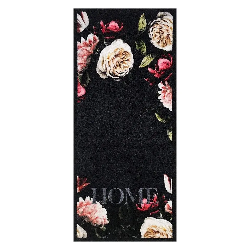 Deurmat Pink Roses antraciet - 66x150 cm