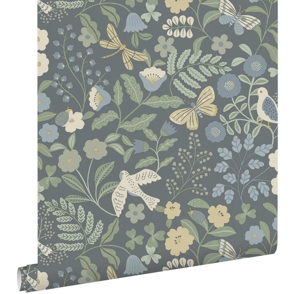 ESTAhome behang bloemen blauw - 50 x 900 cm