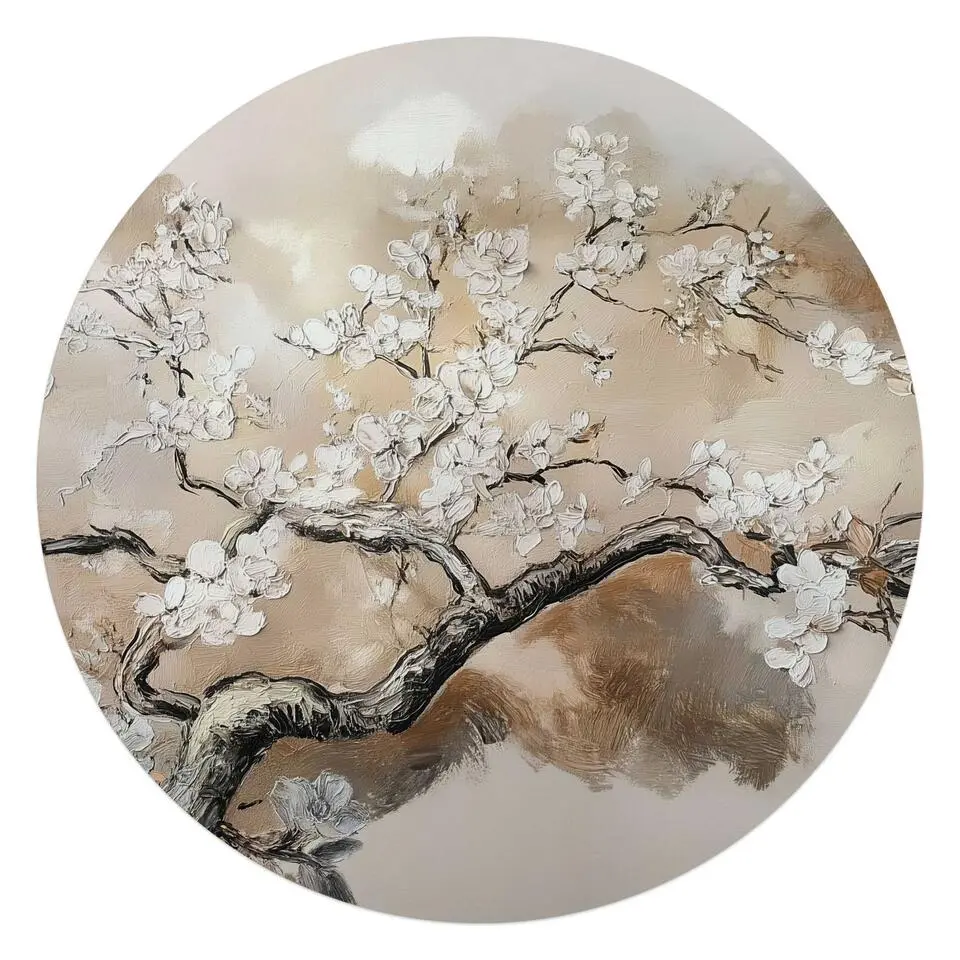 Glasschilderij Boom in bloei - Ø 70 - Beige