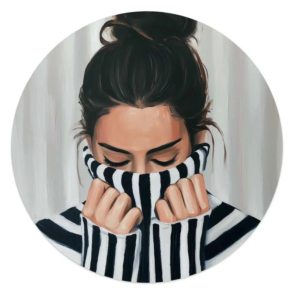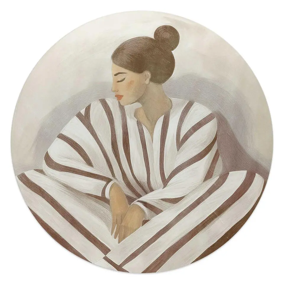 Glasschilderij Zen dame - Ø 50 - Bruin