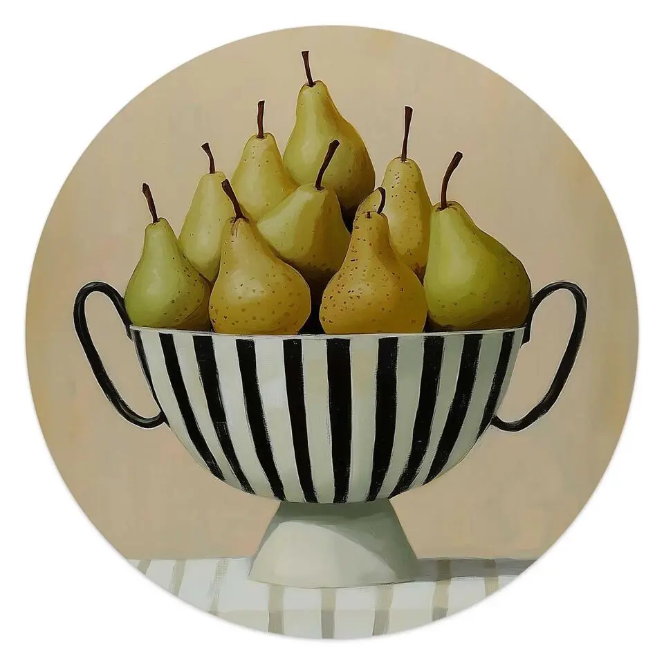 Glasschilderij Schaal met peren - Ø 50 - Groen