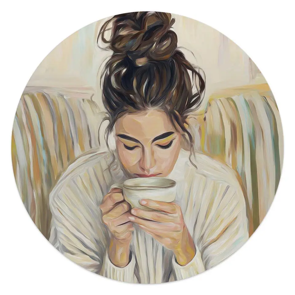 Glasschilderij Koffiepauze - Ø 50 - Beige
