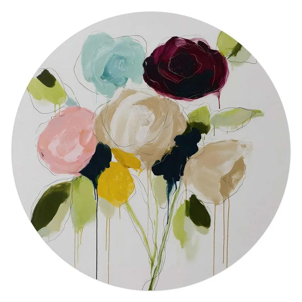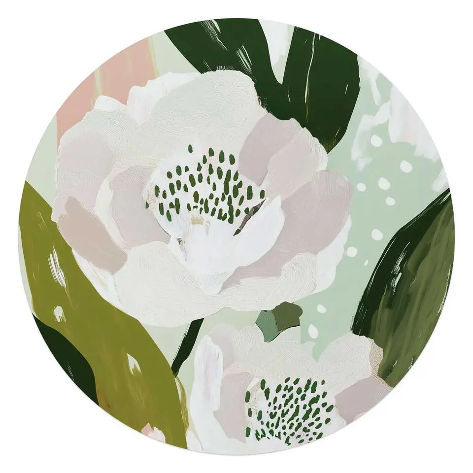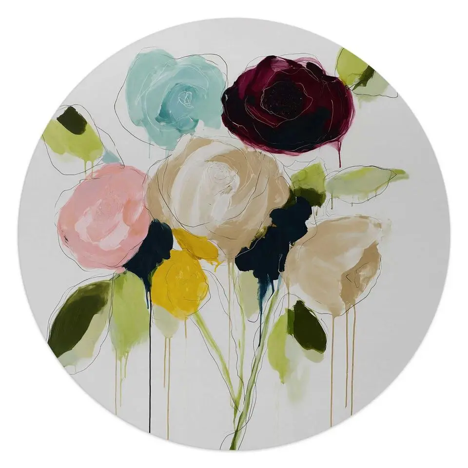Glasschilderij Pastel bloemen - Ø 50 - Groen