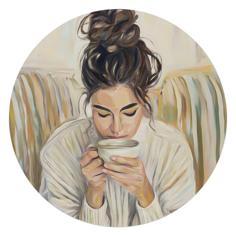 Glasschilderij Koffiepauze - Ø 70 - Beige