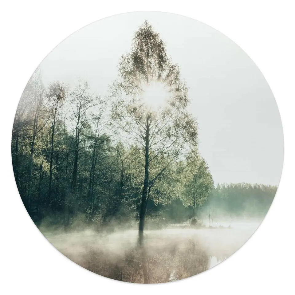 Glasschilderij Ochtend aan het water - Ø 70 - Groen