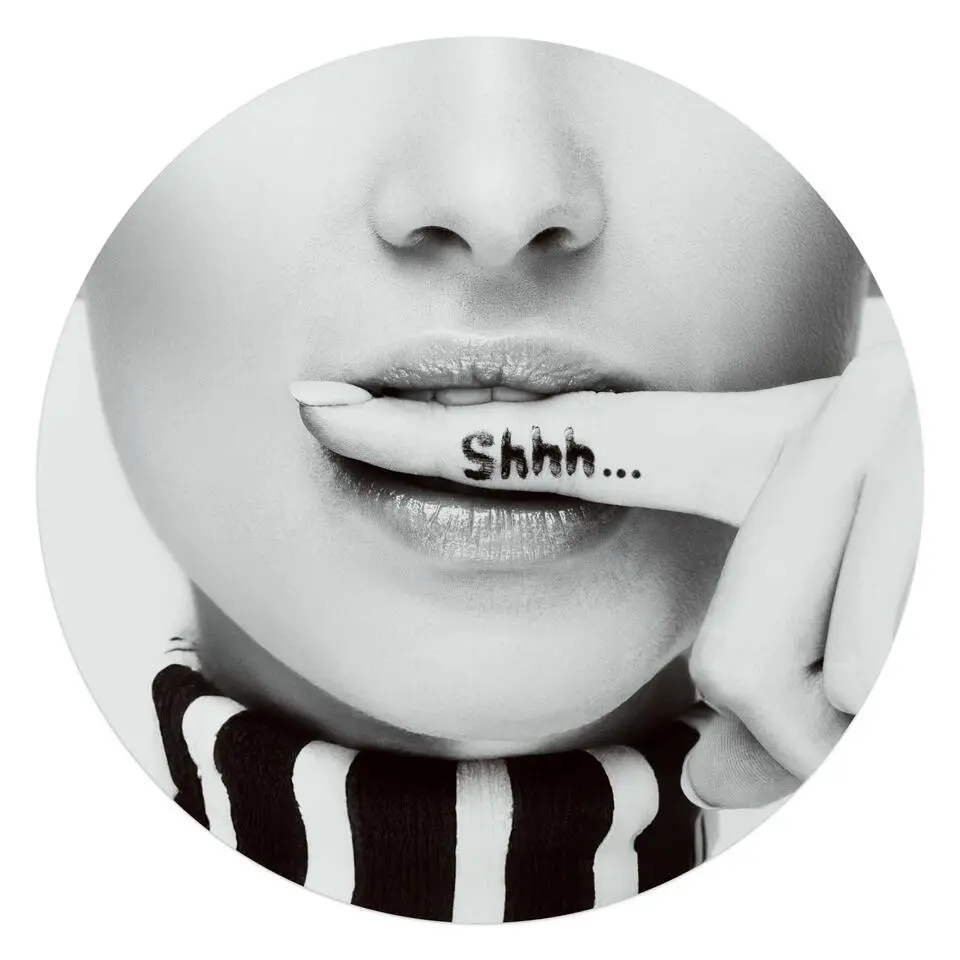 Glasschilderij Shhh.. - Ø 70 - Zwart-Wit