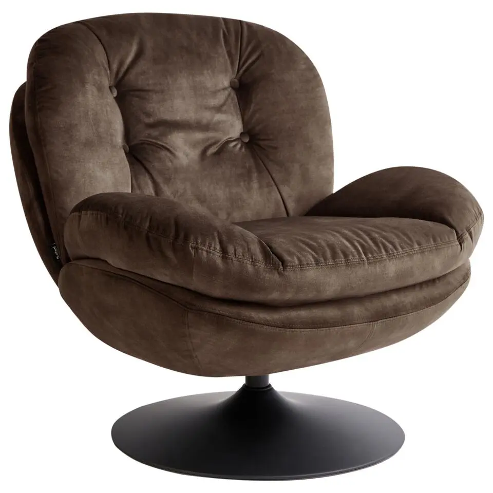 NOLVIK - Draaifauteuil - Donkerbruin - Fluweel