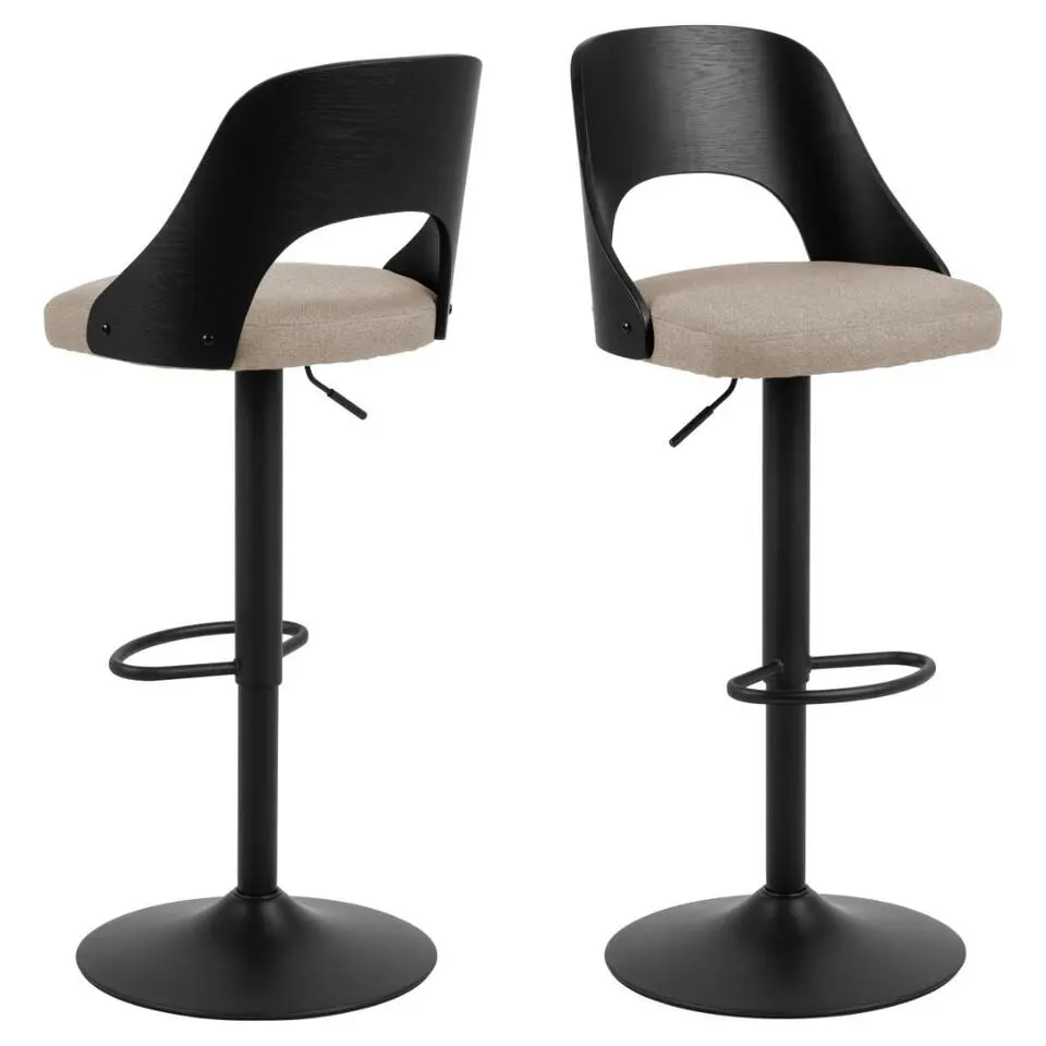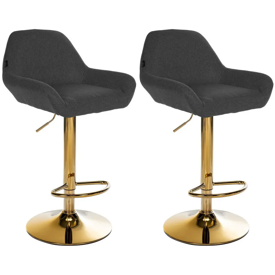 CLP Set van 2 Barkruk Braga goud Frame - Stof - zwart
